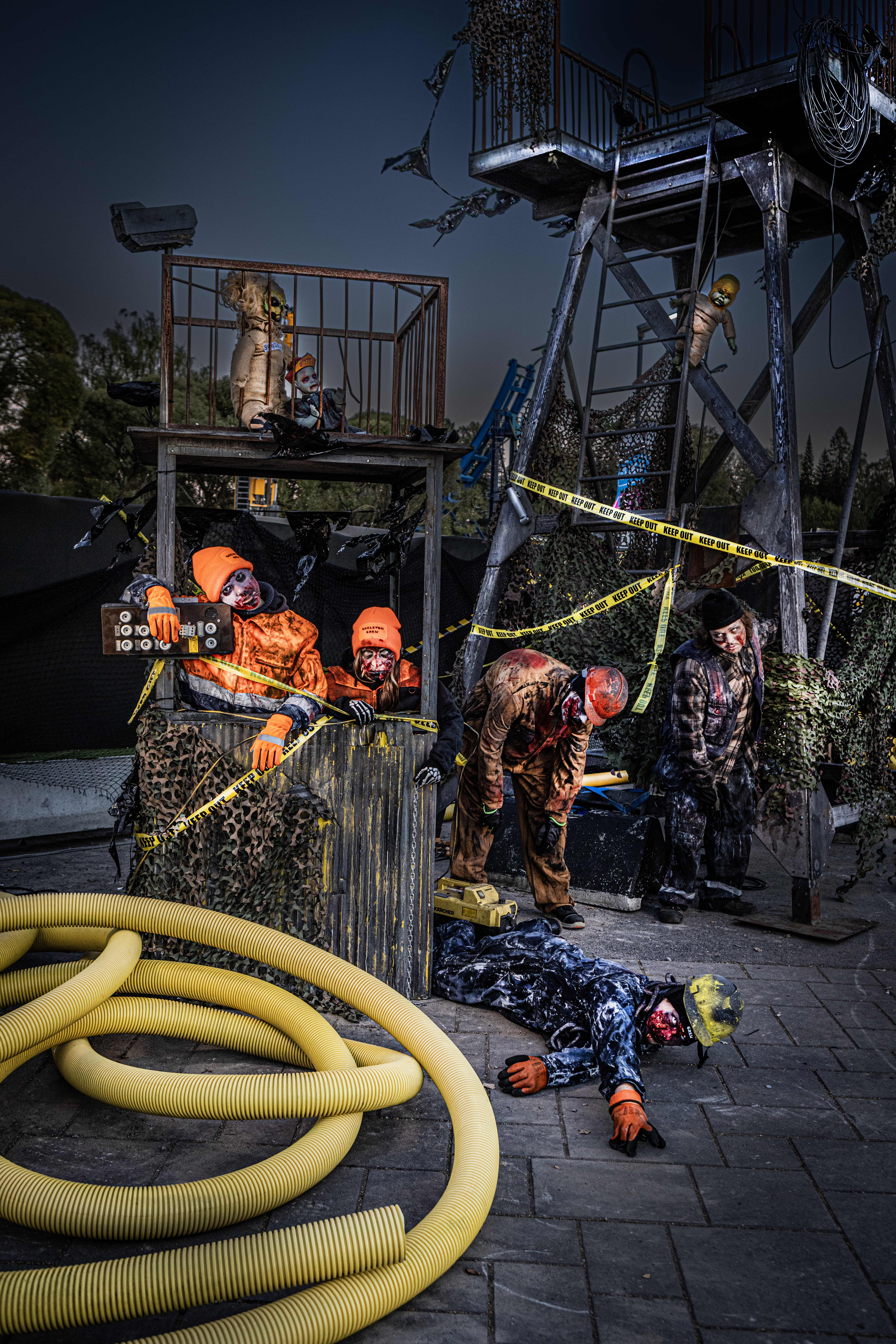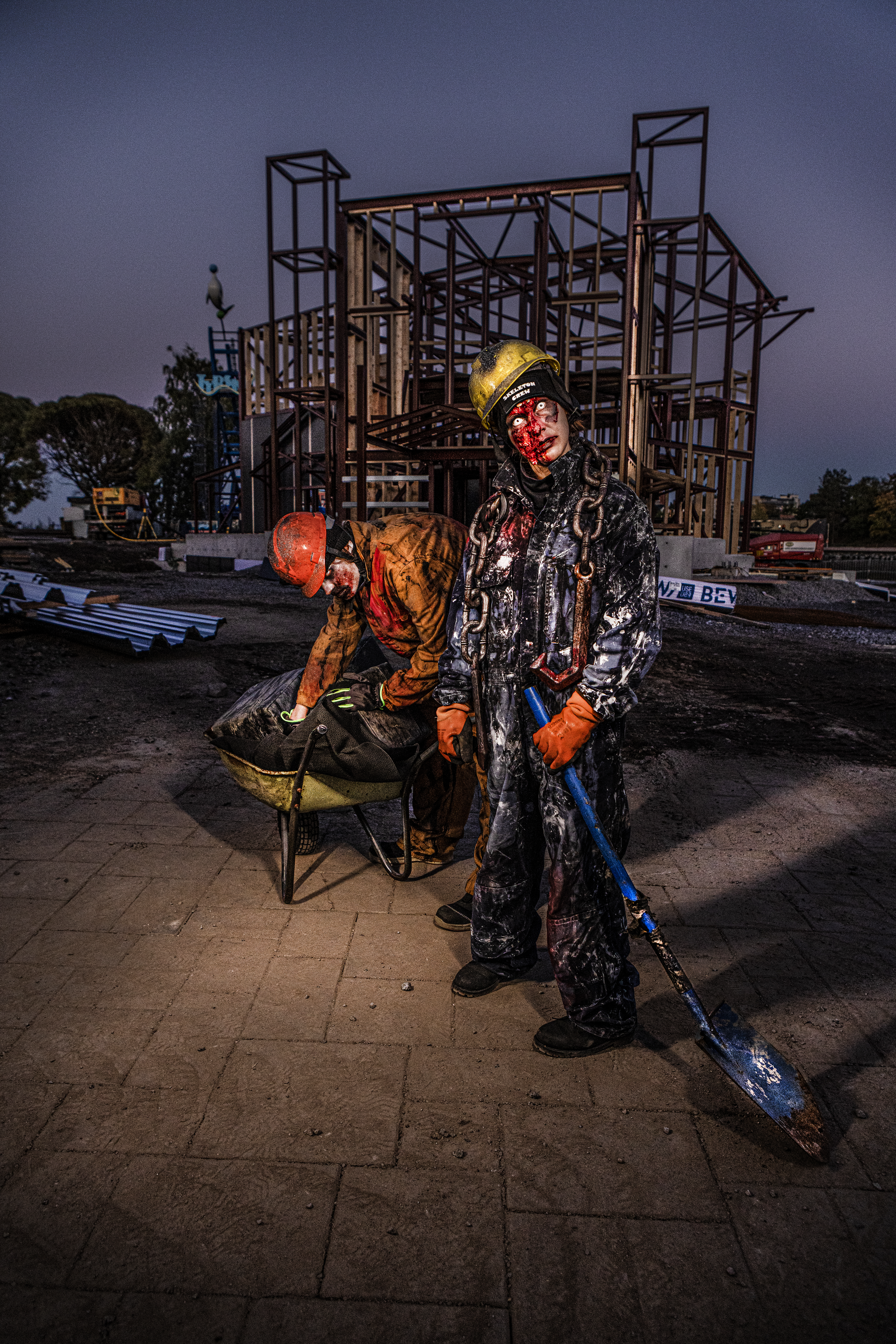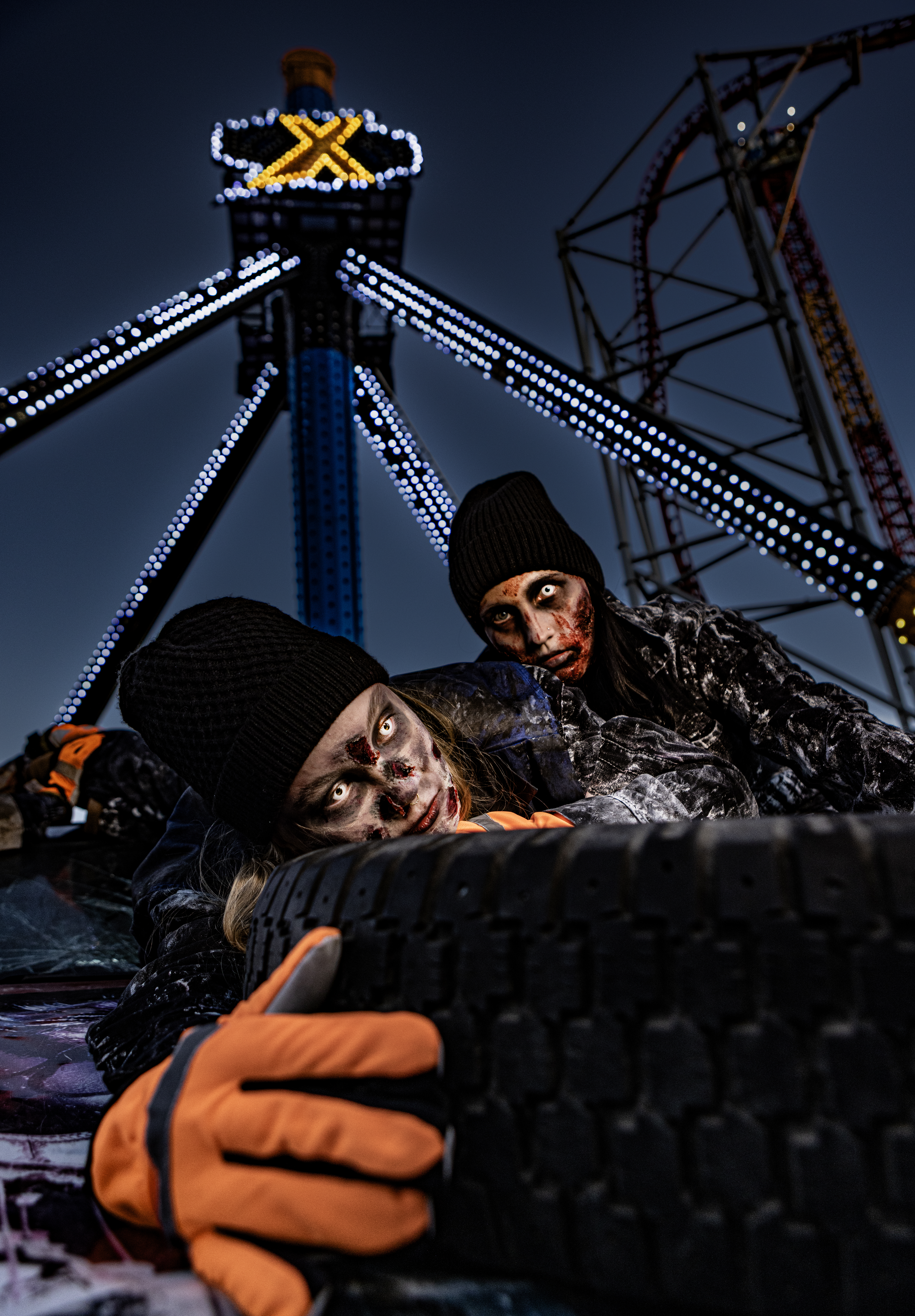 The construction site of the new roller coaster came to a sudden halt when a mysterious gas leak turned its workers into flesh-hungry zombies. Now, helmets, reflective vests, and bloodied tools clink in the darkness as they stalk their next victim. When you cross the fence into the construction area, be careful — the zombies might make you part of the roller coaster, too… The actors will not touch you. Please do not touch the actors either. Zombie Zone is included in the Carnival Wristband and the Carnival Ticket. Zombie Zone is located in front of the X, Troika, and High Voltage rides. The recommended age limit is 15 years. The attraction is scary. Younger children may participate at the discretion of their guardians. Zombie Zone is open daily from 16:00 to 21:00 (until 22:00 on Saturdays).