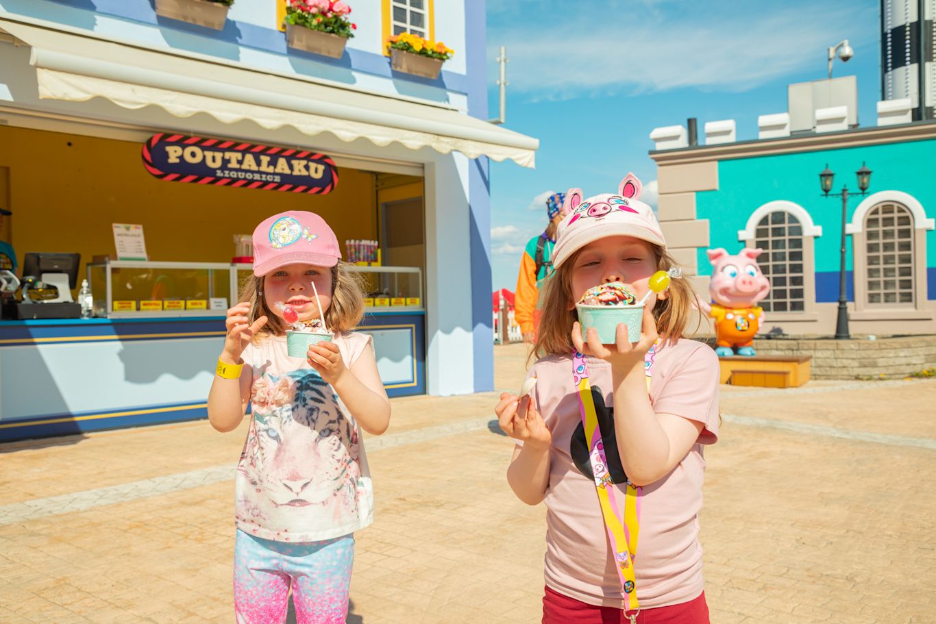 The Treat kiosk is located at the Piggy Town, The kiosk offers cotton candy, pop corn and other refreshments. Coffee 3,90 € Tea 2,90 € Tazza Cocoa 4,40 € Marshmallow Cocoa 4,90 € Water bottle 0,5 l 3,20 € Soda bottle/Vichy 0,5 l 4,50 € Juice box 0,2 l 2,00 € Cotton Candy 4,90 € Light Cotton Candy 7,30 € Popcorn 4,90 €